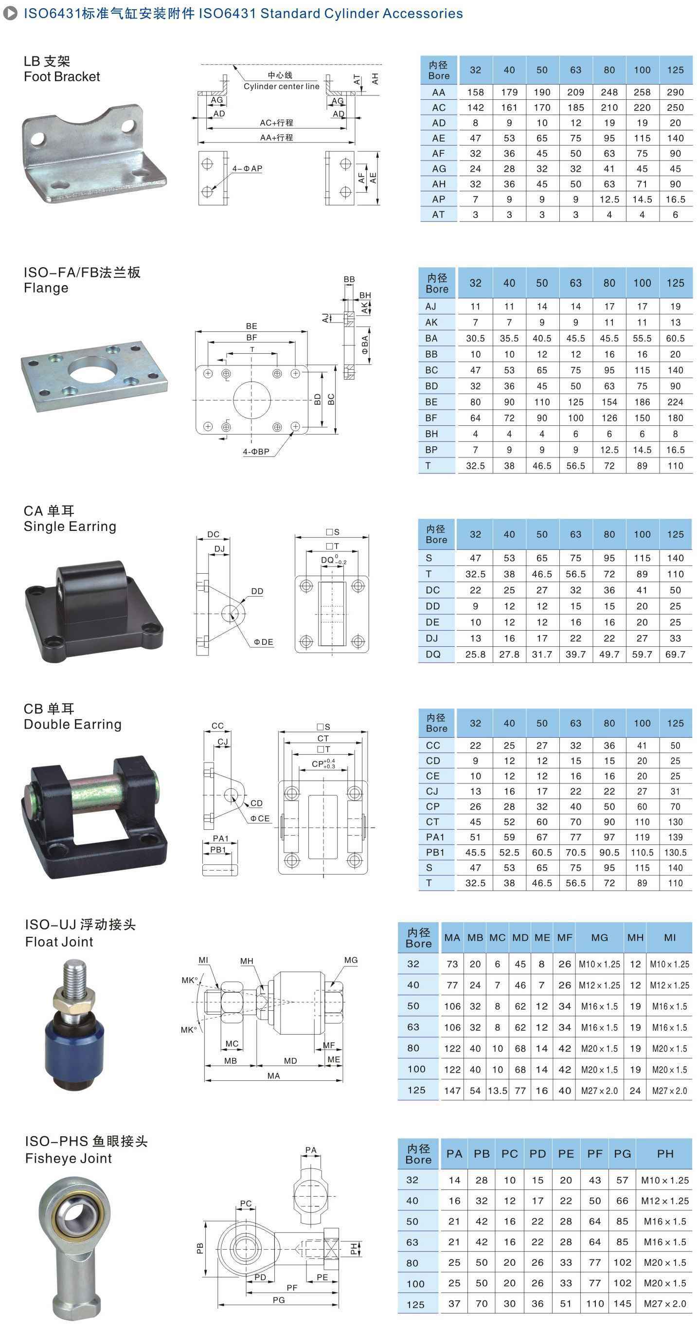 DNC系列ISO6431标准气缸安装附件